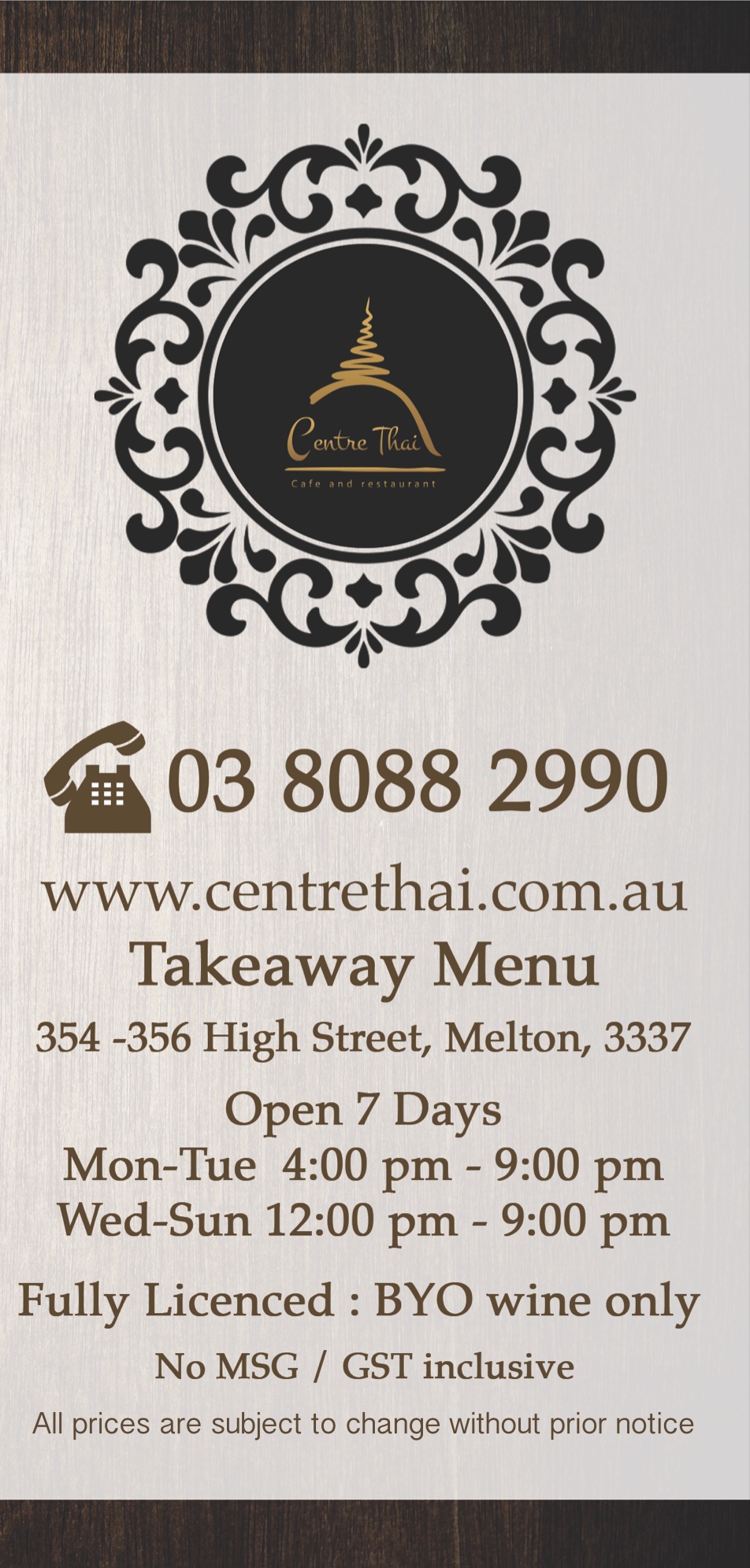 Take Away MenuCentre Thai Cafe and Restaurant2025-07-09T12:44:46+10:00